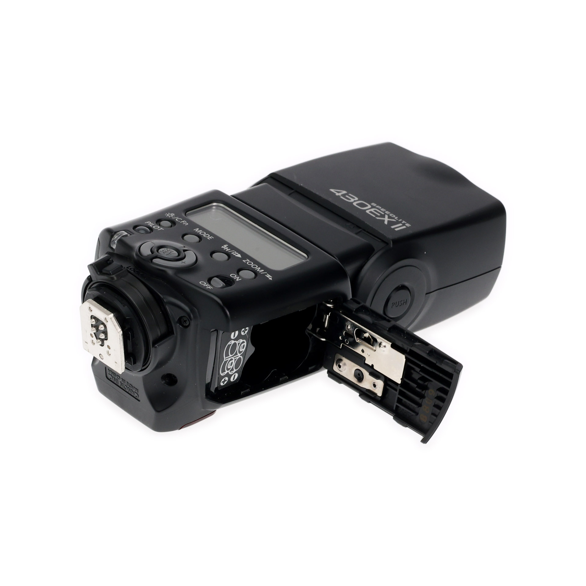 Bringing a new level of versatility and capability to flash photography, the Speedlite 430EX II features a powerful flash (guide number of 141 ft./43m at ISO 100) with a fast recycling time in a compact, durable body. A one-touch quick-lock mechanism makes it easy to attach or detach the 430EX II from the camera and a metal foot has been added for strength and durability. Flash controls can now be set through the camera's LCD screen on compatible EOS Digital SLR cameras. The Speedlite 430EX II is also quieter, recycle time is 20% faster (as compared to the 430EX) and since it is compatible with Canon's wireless E-TTL, it can be used as an affordable "slave unit".