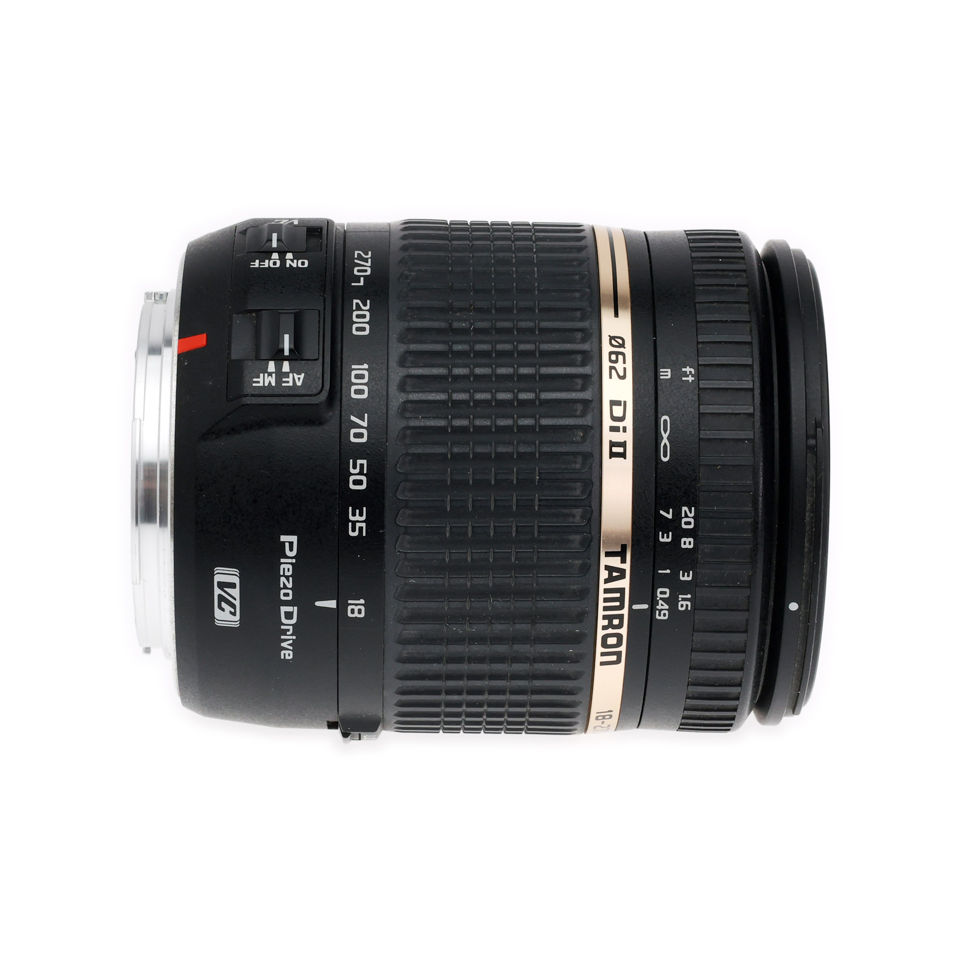 Tamron's next generation 18-270mm, the world's lightest, smallest 15x zoom optimized for use on APS-C- DSLRs, continues the pursuit of the ideal all-in one zoom lens. Combining prior award-winning achievements with new engineering breakthroughs yielded the remarkable 18-270mm F/3.5-6.3 Di II VC PZD (Piezo Drive). Special piezoelectric technology now delivers faster, quieter precision autofocusing. Tamron's exclusive tri-axial VC (Vibration Compensation) image stabilization, featuring three pairs of driving coils and low-function ball bearings placed around the VC optical group, combats camera shake-related image blur. It's Tamron VC that allows handheld shooting at as many as four shutter speeds slower than otherwise possible with a dramatically stable viewfinder experience. Compactness and light weight are preserved, thanks in part to the VC mechanism's newly-developed moving coil mechanism.