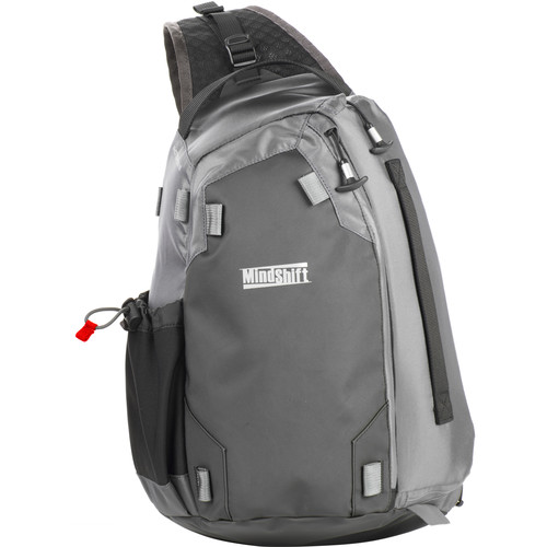 The carbon gray PhotoCross 10 Sling Bag from MindShift Gear is a camera bag that can hold a medium-sized DSLR along with one or two lenses, or a mirrorless camera with five lenses.