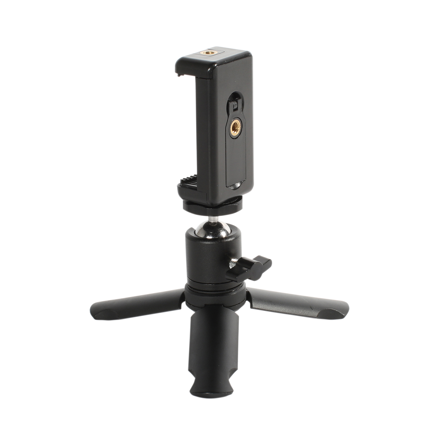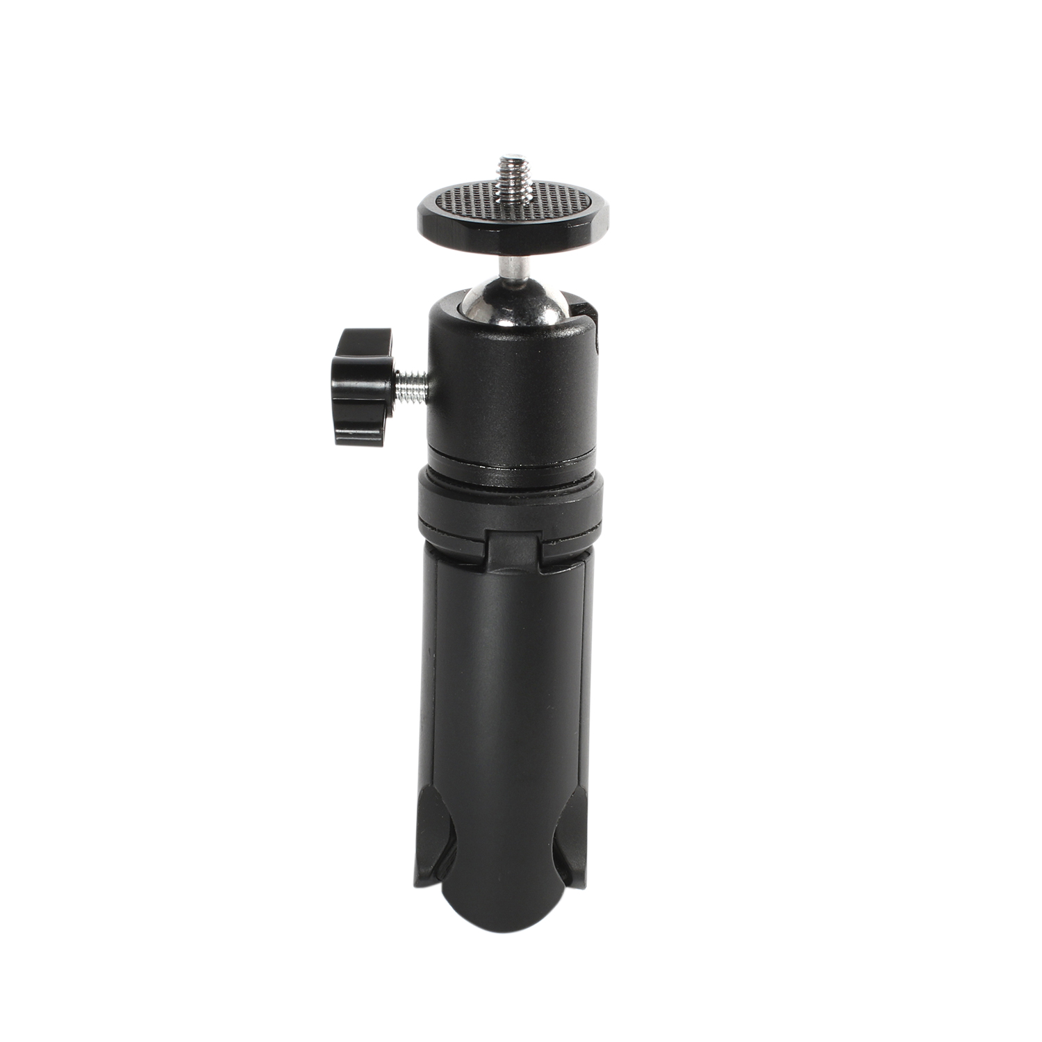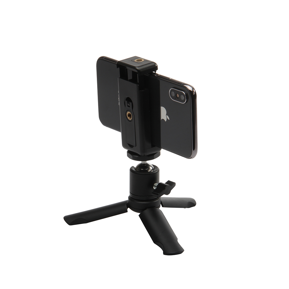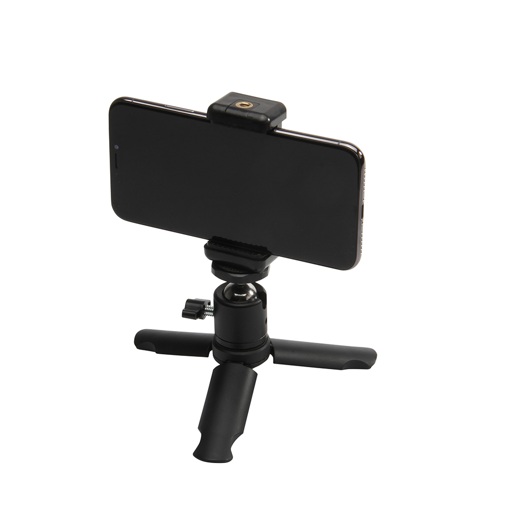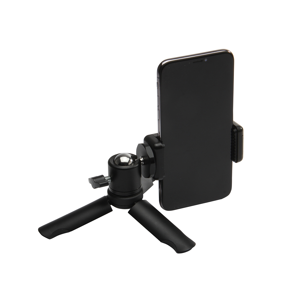 [addtoany]DL-0911K is a sturdy mini tripod and grip. It includes a phone mount that can hold a standard or plus size phone. Tripod legs fold to a perfectly round 2-1/2” long very comfortable hand grip. It’s small enough to slip into a pocket or bag at only 5-1/8″ long.