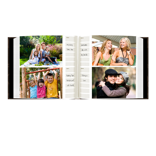 This silk fabric covered album features a frame front design and rounded book bound spine. The album holds 200 photos up to 4″x6″ in optically clear pockets with a shaded paper background and memo writing area. Photos are displayed two per page. The album measures 9.625″x9″x2″. Photo Safe: Acid, lignin and PVC free.