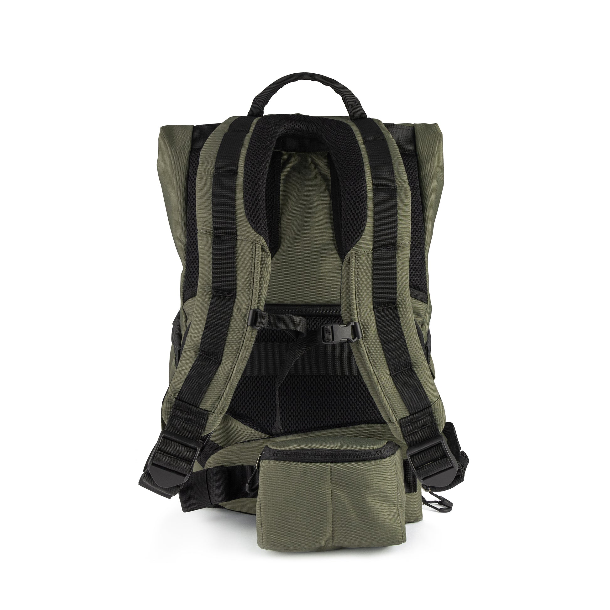 Jasper’s shoulder harness system is designed for all-day comfort. In fact, it’s designed for multi-day comfort. Superior padding and adjustability are just the beginning. The waist belt carry’s the bulk of the bag’s weight on your hips, which saves you from back strain. The adjustable sternum strap places the shoulder straps exactly where you want them. This is how the best long-distance outdoor backpacks in the world are designed. And it is how this Jasper Rolltop backpack is constructed. The waist belt is lined with loops for attaching accessories. A small (removable) bag is included on the belt, which is perfect for keeping a small camera, binoculars, or snacks at-the-ready. The waist belt is also removable, which allows the bag to be trimmed down. This can be helpful for carrying on a plane or for times when you simply don’t require a waist belt.