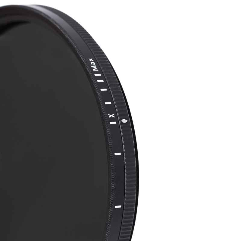 Variable ND Filter – 1.3 to 8 Stops – Optical Glass – Repellemax II Coating – Color Correcting Polarizing Lens Films – Density Stop Markings – Removable Knurled Rotation Knob – Protects Against Oil, Dirt, Dust