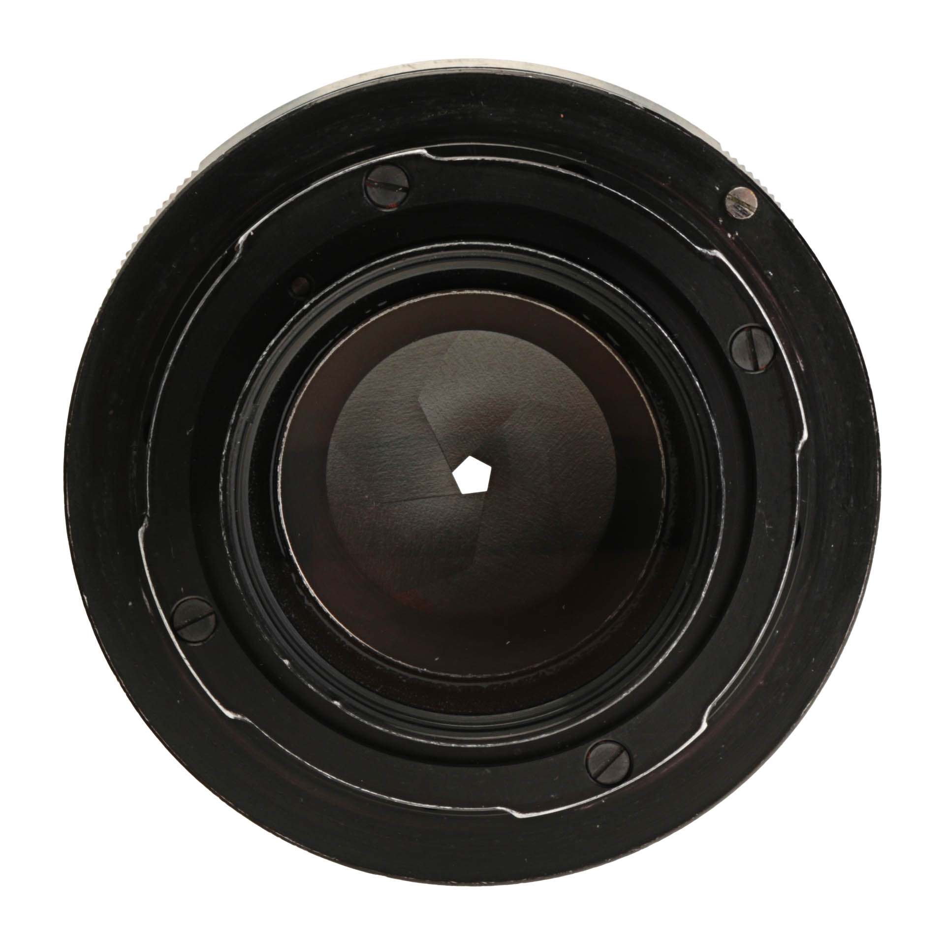Optics are externally clean, with some internal dust and other flaws which may slightly impact image quality. The lens has many marks on a middle and rear element, that look like cleaning marks.