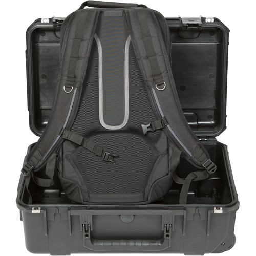 Store, transport, and protect two cameras, up to five lenses, and related accessories while combining the benefits of a molded case and a backpack with the black SKB iSeries 2011-7 Case w/Think Tank Designed Photo Backpack. The hard shell molded case is watertight and dustproof. It also features two, trigger latches, two metal reinforced locking loops for optional padlocks, an automatic, ambient pressure equalization valve, a pull handle with wheels, and an over-sized grab handle. The case is designed to meet Airline carry-on requirements. Of course, it’s always a good idea to check with your carrier prior to departure. The case and backpack may each be used separately.