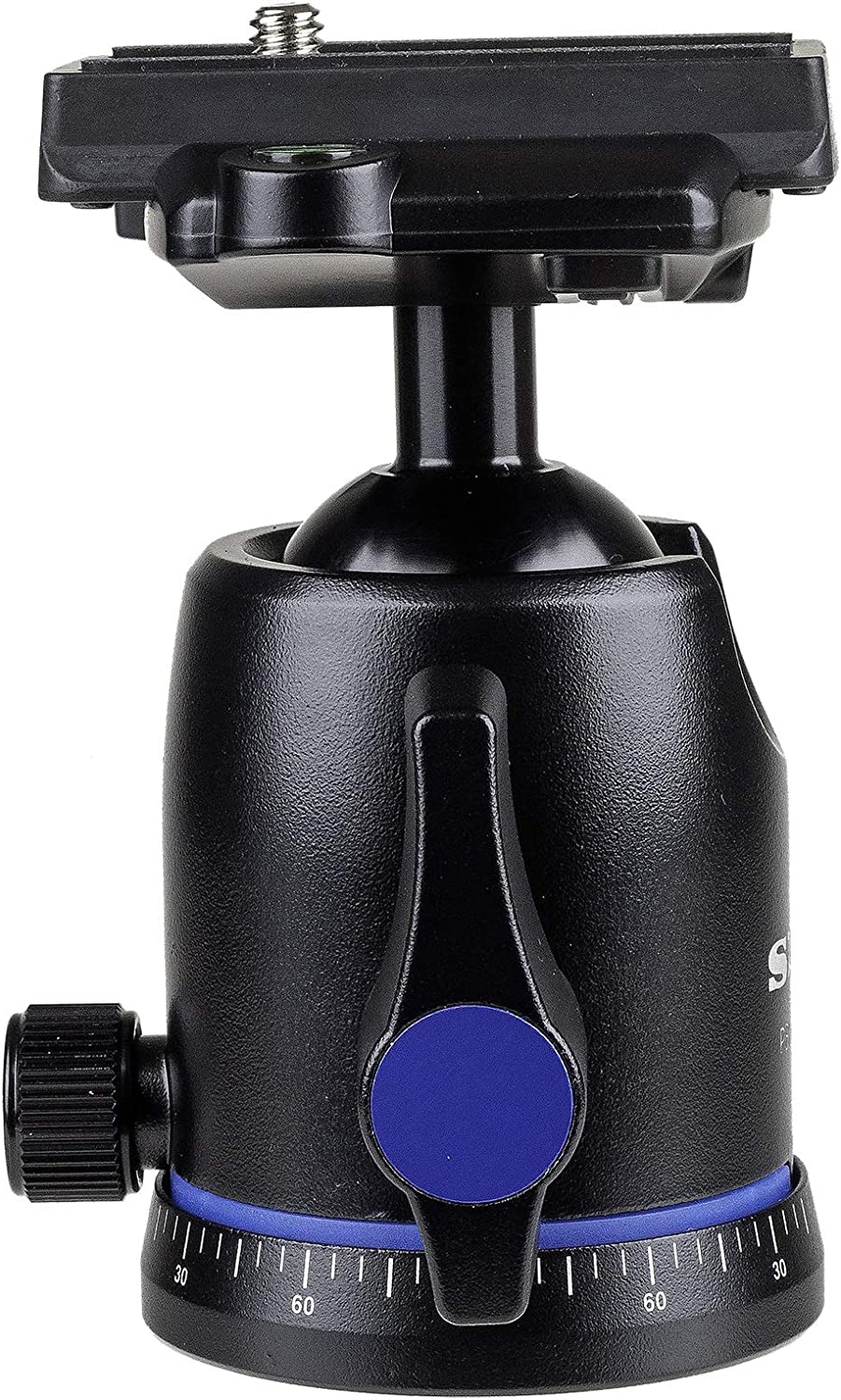 The compact professional SLIK pbh-635as ball head has an Arca-Swiss compatible quick release systems for mounting the camera. This newly designed quick release allows an Arca-Swiss compatible quick release plate to lock into place from the side rather than siding in from the front or back. This combined with the 635as’ single level QR lock makes mounting and dismounting the camera much faster and easier than the traditional Arca-Swiss system. This head also features a separate pan lock that locks the ball into place while allowing the head to rotate 360 degrees. Its tension knob controls the rate of the ball’s movement. The low-profile Arca-Swiss quick release plates may be left on the camera and won’t hinder vertical shooting. The pbh-635as ball head has a capacity 13.2 lbs. The head is capable of handling a full sized professional DSLR with standard lens. In addition to the standard easy grip ball lock lever the head has a tension adjustment knob to fine-tune the drag on the ball movement. It also has a separate panoramic lock with Degree markings around the base for stitching together for panoramic photos.